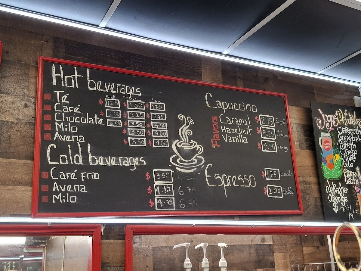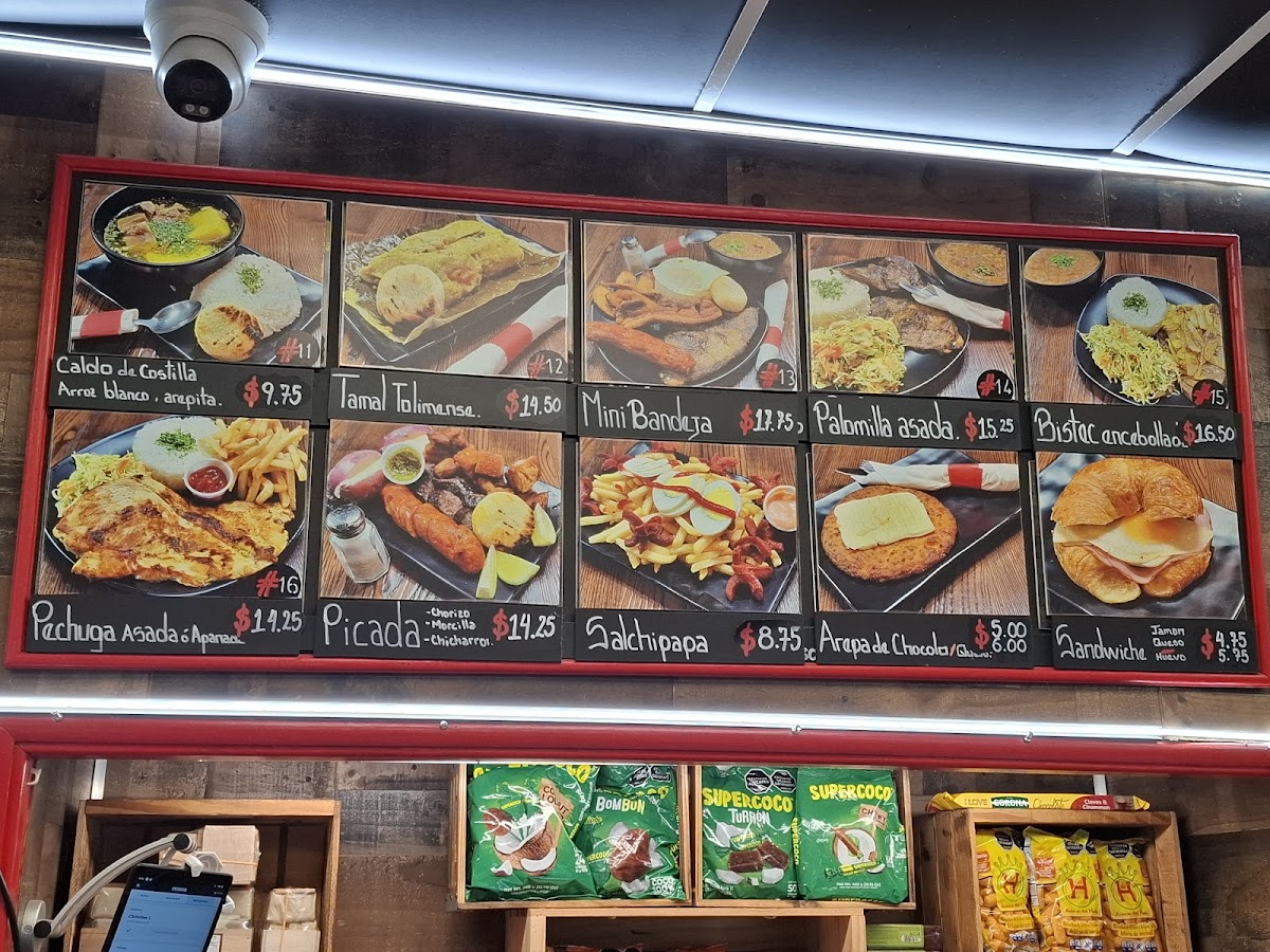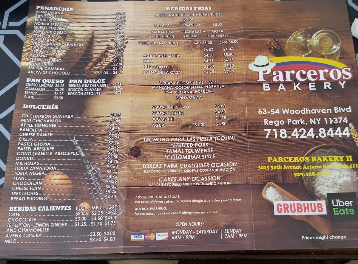 The menu at Parceros Bakery & Restaurant features a variety of traditional Colombian dishes along with baked goods and beverages, suitable for breakfast, lunch, and casual dining. Visitors can expect a selection that includes hearty meals, snacks, and hot drinks.